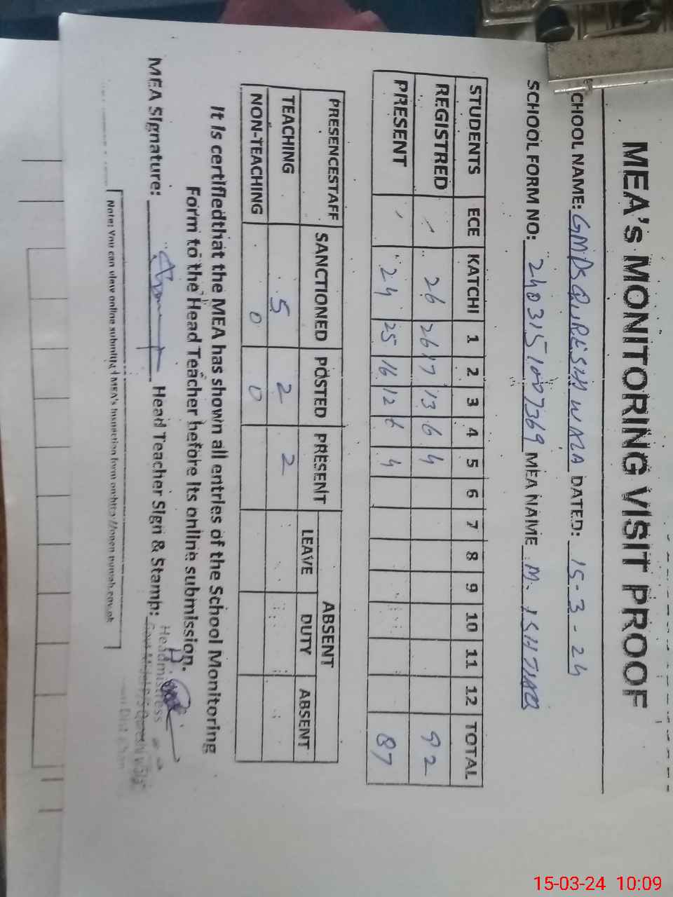 | Monitoring Date: 15-03-2024 | Start Time: 15-03-2024 09:39 AM | End Time: 15-03-2024 10:11 AM | Name of MEA: M.Is**** (S**** 03**** | |