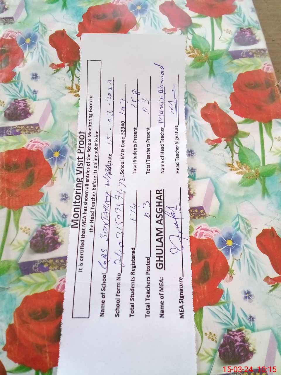 | Attendance Register | Head Teacher | MEA with School | Visit Proof |