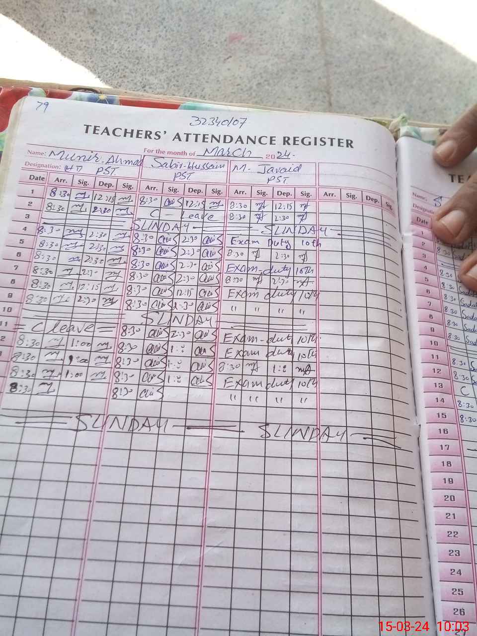 | 32**** | Mu**** Ja**** | PST | Regular | 0 | 0 | 0 | 0 | 0 | 0 | 0 | 0 | 0 | Exam Duty |