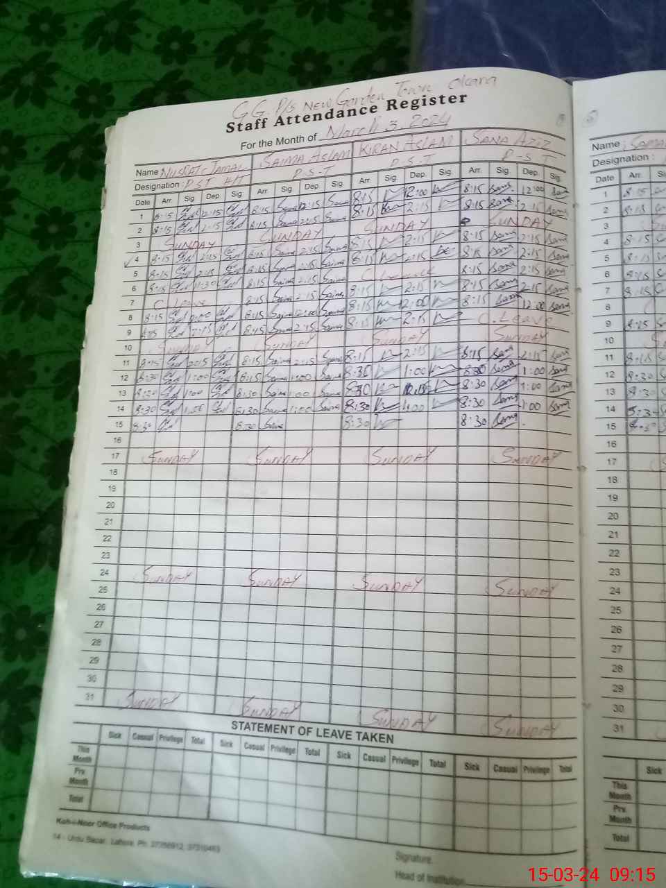 | Leave | Duty | Absent | Maternity | Medical | Ex- Pak |