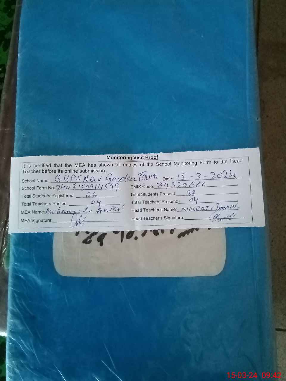 | Attendance Register | Head Teacher | MEA with School | Visit Proof |