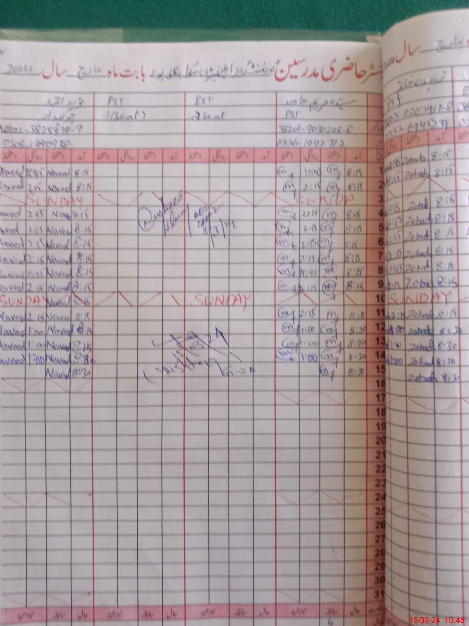 | CNIC | Full Name | Designation | R/C | Absence During Last Calender Month |