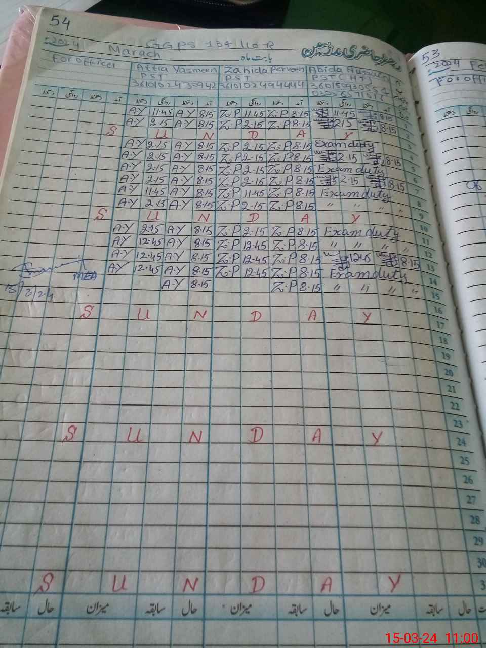 | 36**** | Ab**** Hu**** | 1 | 1 | 0 | 0 | 0 | 0 | 0 | 0 | 0 | 0 | 0 | Exam Duty |