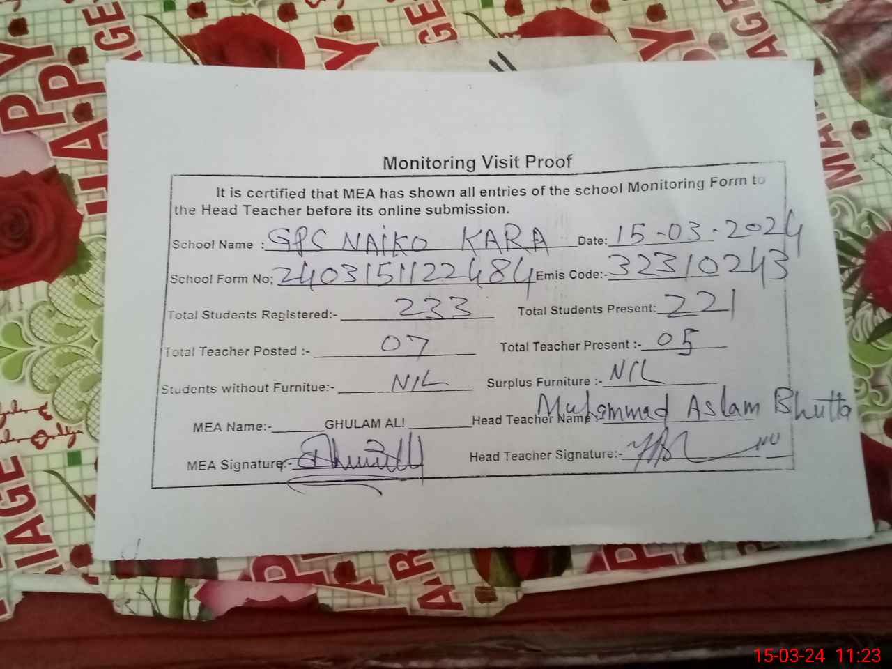 | EMIS Code: 32310243 | Name of School: GPS NAIKO KARA | |||