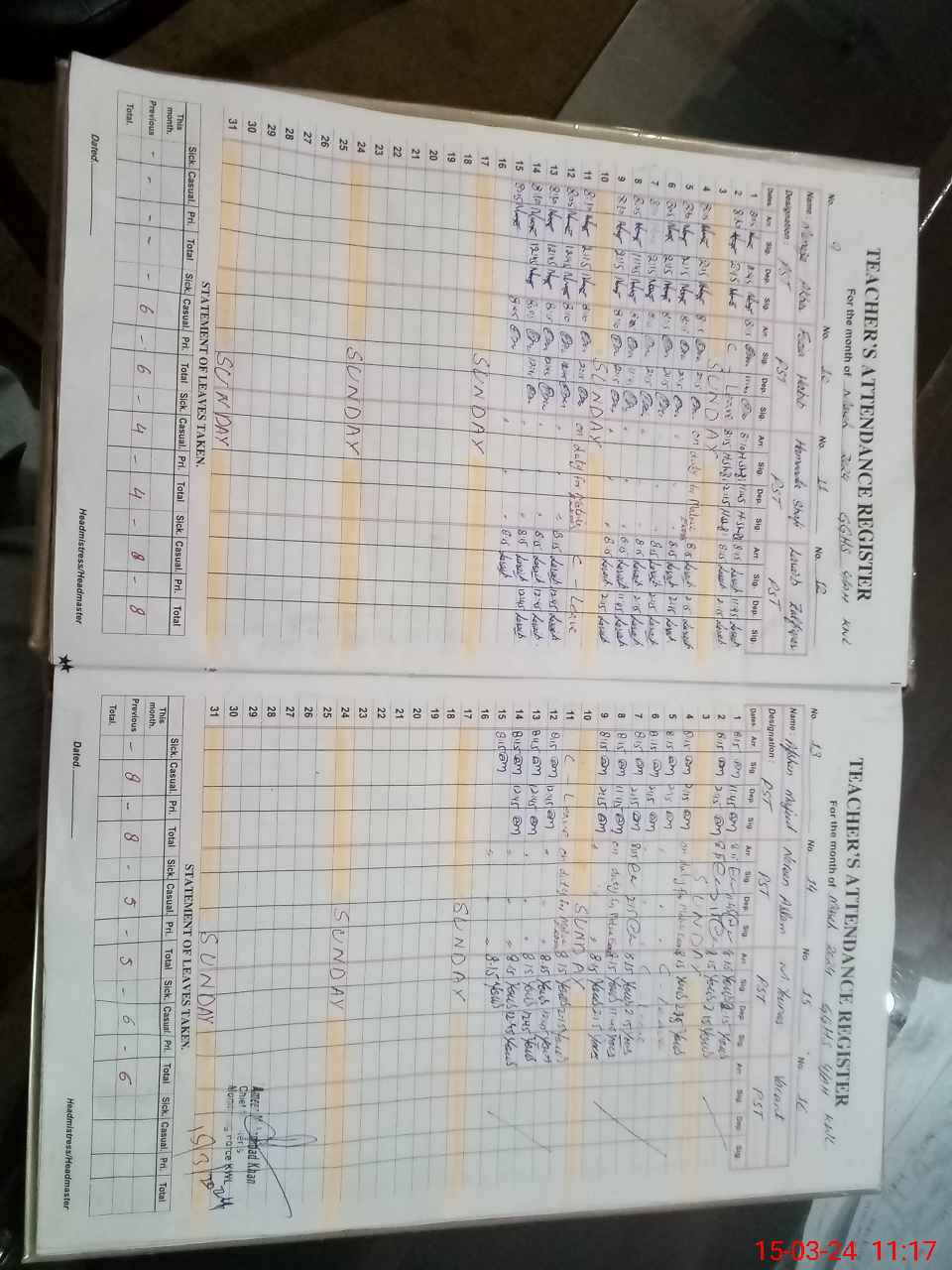 | 32**** | Ha**** Sh**** | 2 | 2 | 0 | 0 | 0 | 0 | 0 | 0 | 0 | 0 | 0 | Exam Duty |