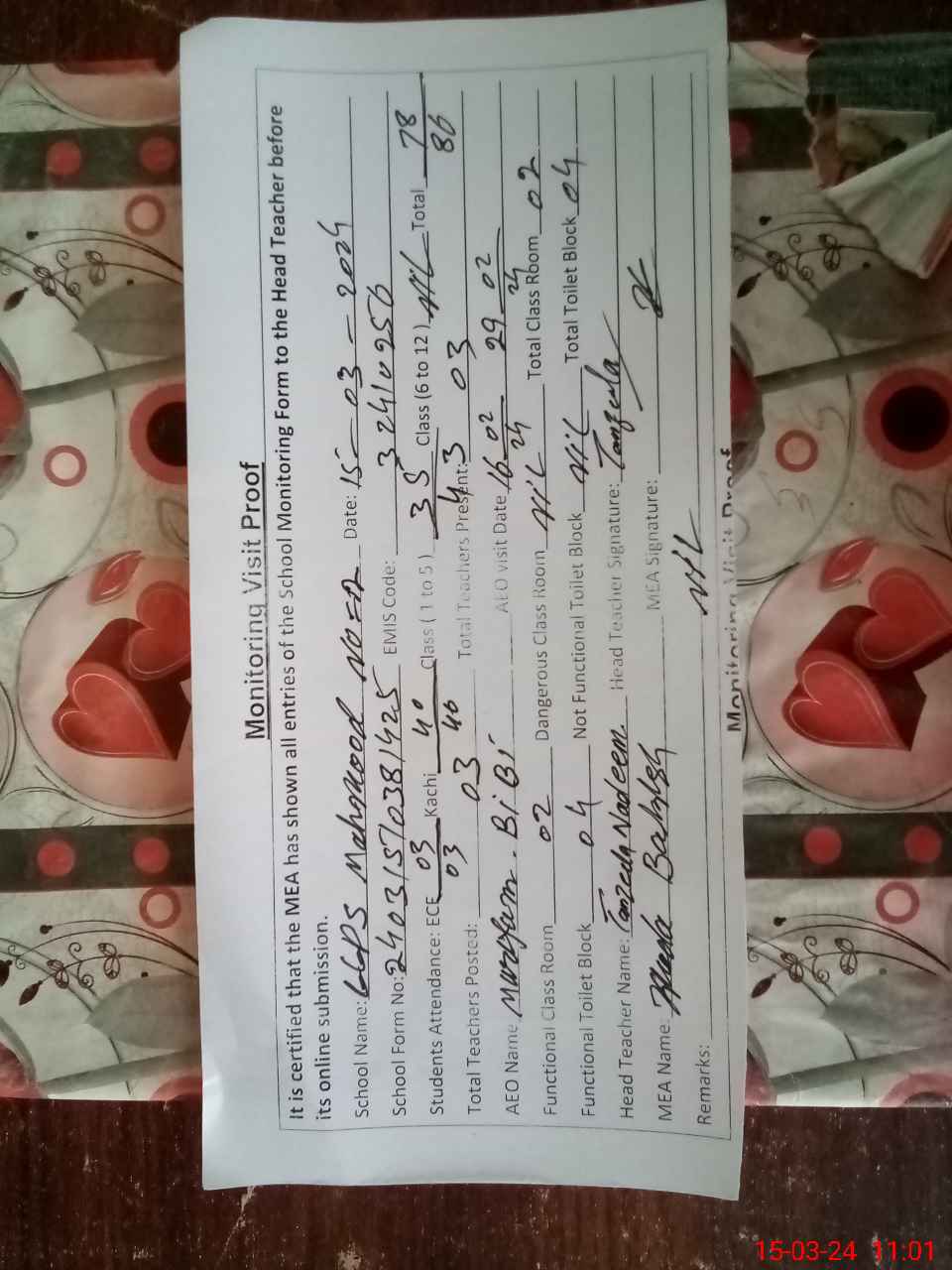 | EMIS Code: 32410256 | Name of School: GGPS MEHMOOD ABAD NO. 2 | |||