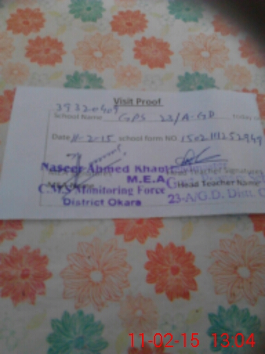 | EMIS Code: 39320409 | Name of School: GPS CHAK NO. 23-A/G.D | |||