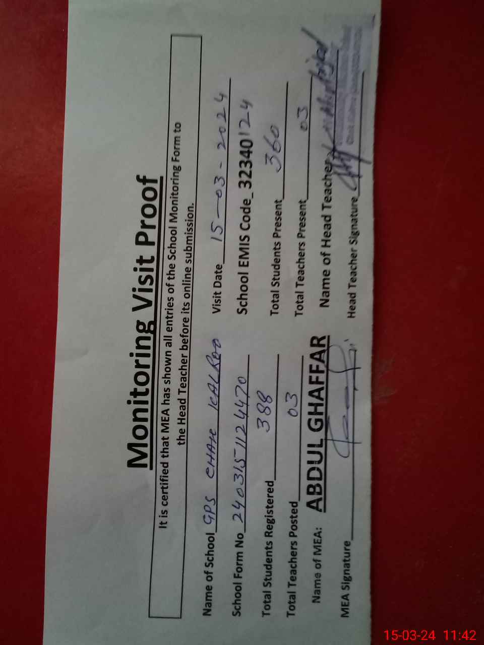 | EMIS Code: 32340124 | Name of School: GPS CHAK KALROO | |||