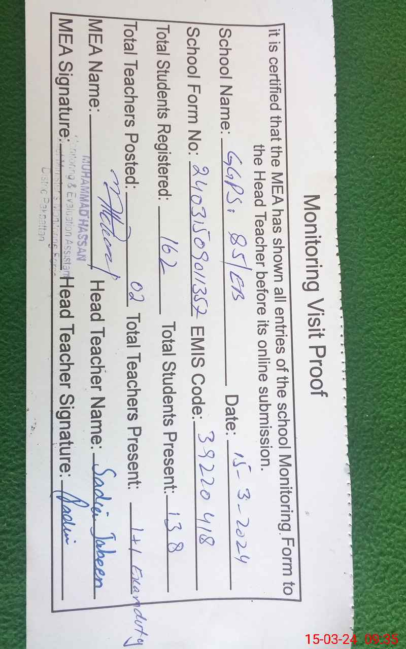 | EMIS Code: 39220418 | Name of School: GGPS 85 EB POST OFFICE QABOOLA | |||