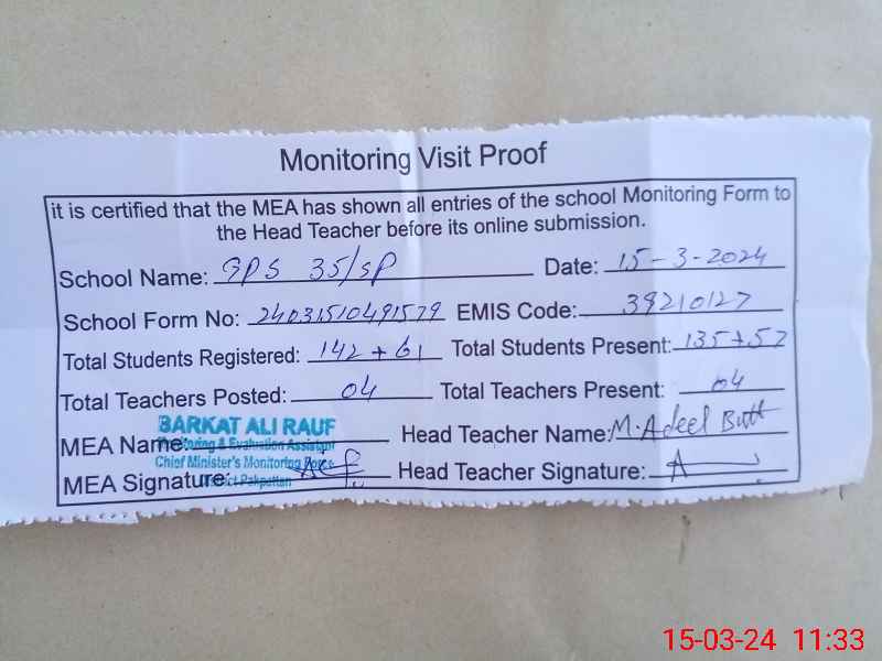 | EMIS Code: 39210127 | Name of School: GPS 35 SP | |||