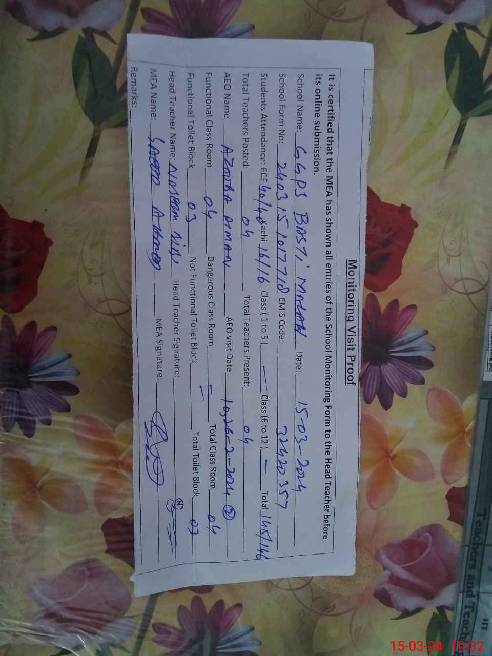 | Certified that this School was Inspected by the Undersigned MEA/DMO Today and the Information Stated Above is as Per Record. | |||||