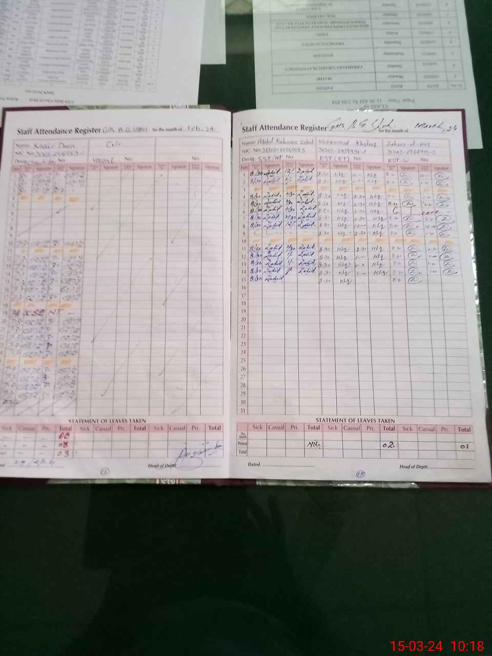 | CNIC | Full Name | Designation | R/C | Absence During Last Calender Month |