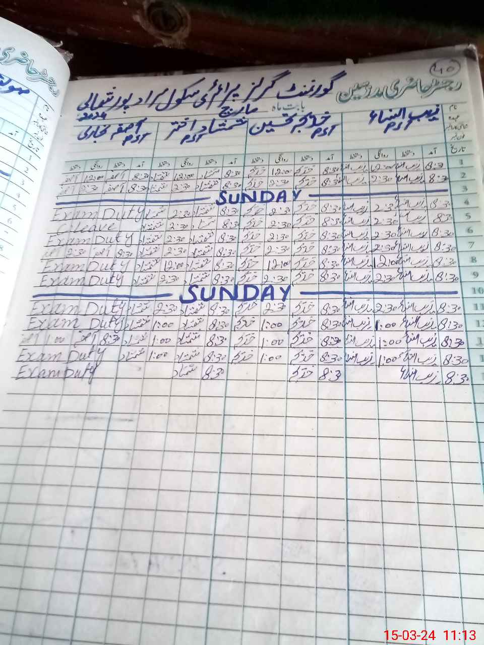 | 32**** | As**** Bo**** | 1 | 1 | 0 | 0 | 0 | 0 | 0 | 0 | 0 | 0 | 0 | Exam Duty |