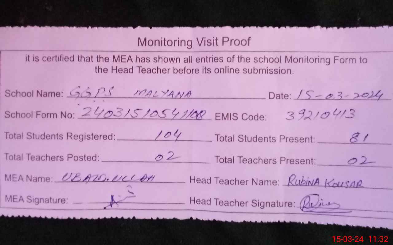 | EMIS Code: 39210413 | Name of School: GGPS MALYANA | |||