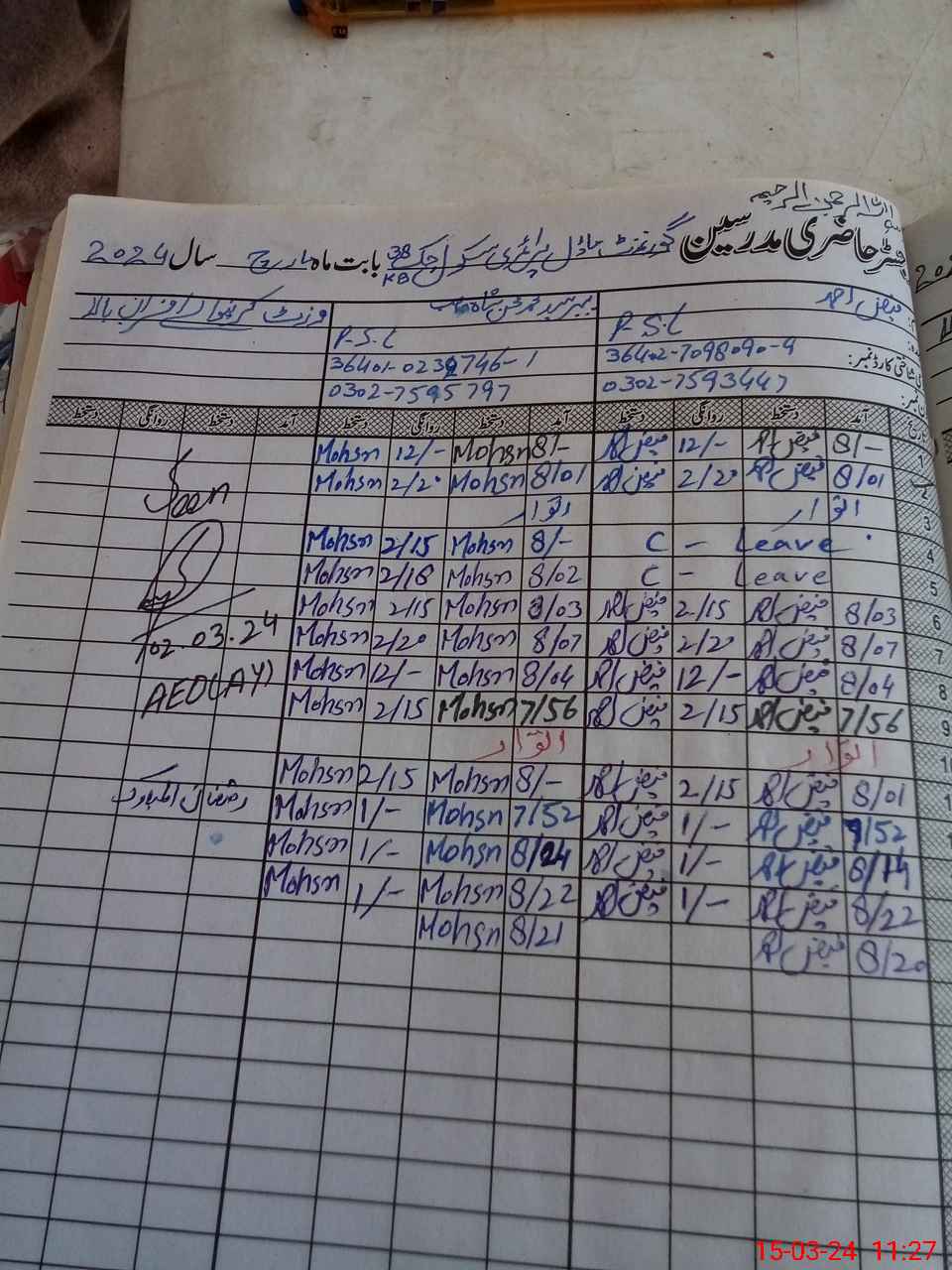 | Name: FA**** AH**** Designation: (School Headmaster's/Headmistress's) PST Phone/Cell Number: 03**** |