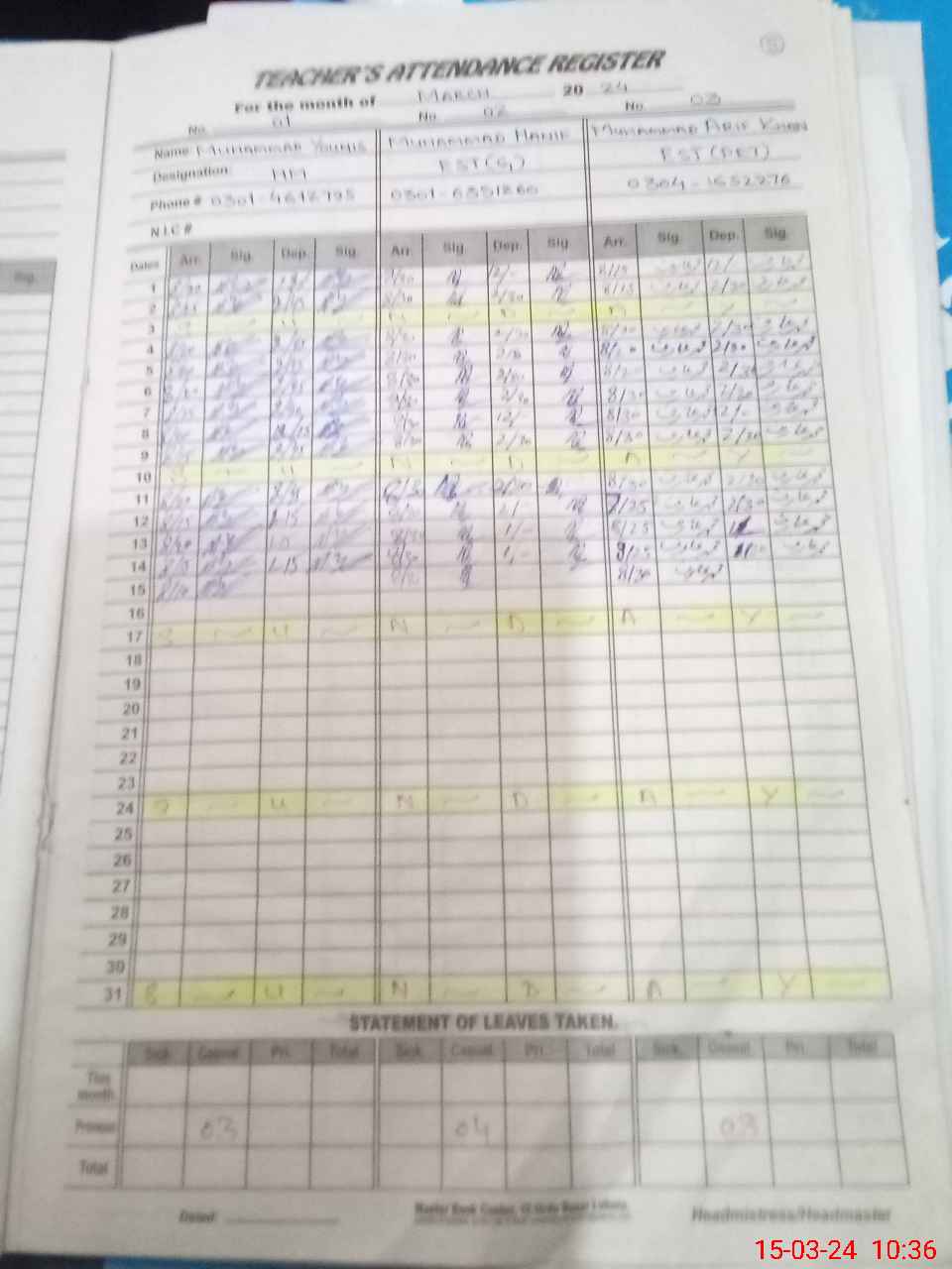 | Name: Mu**** Yo**** Designation: (School Headmaster's/Headmistress's) HEADMASTER Phone/Cell Number: 03**** |