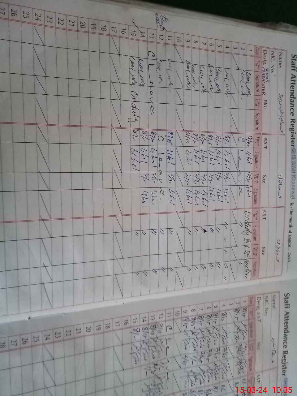 | CNIC | Full Name | Designation | R/C | Absence During Last Calender Month |