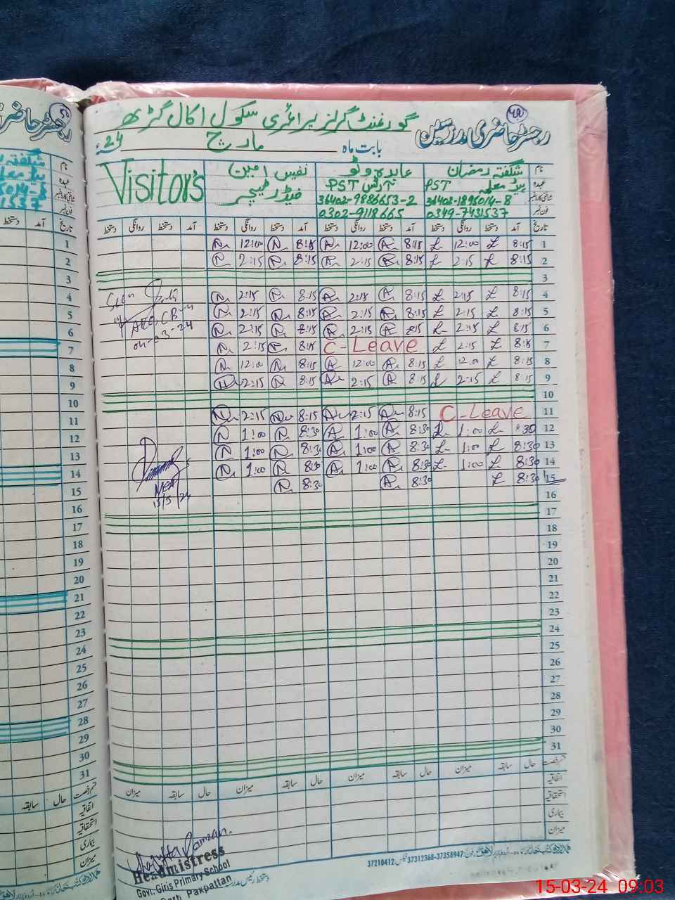 | Name: AB**** BI**** Designation: (School Headmaster's/Headmistress's) PST Phone/Cell Number: 03**** |