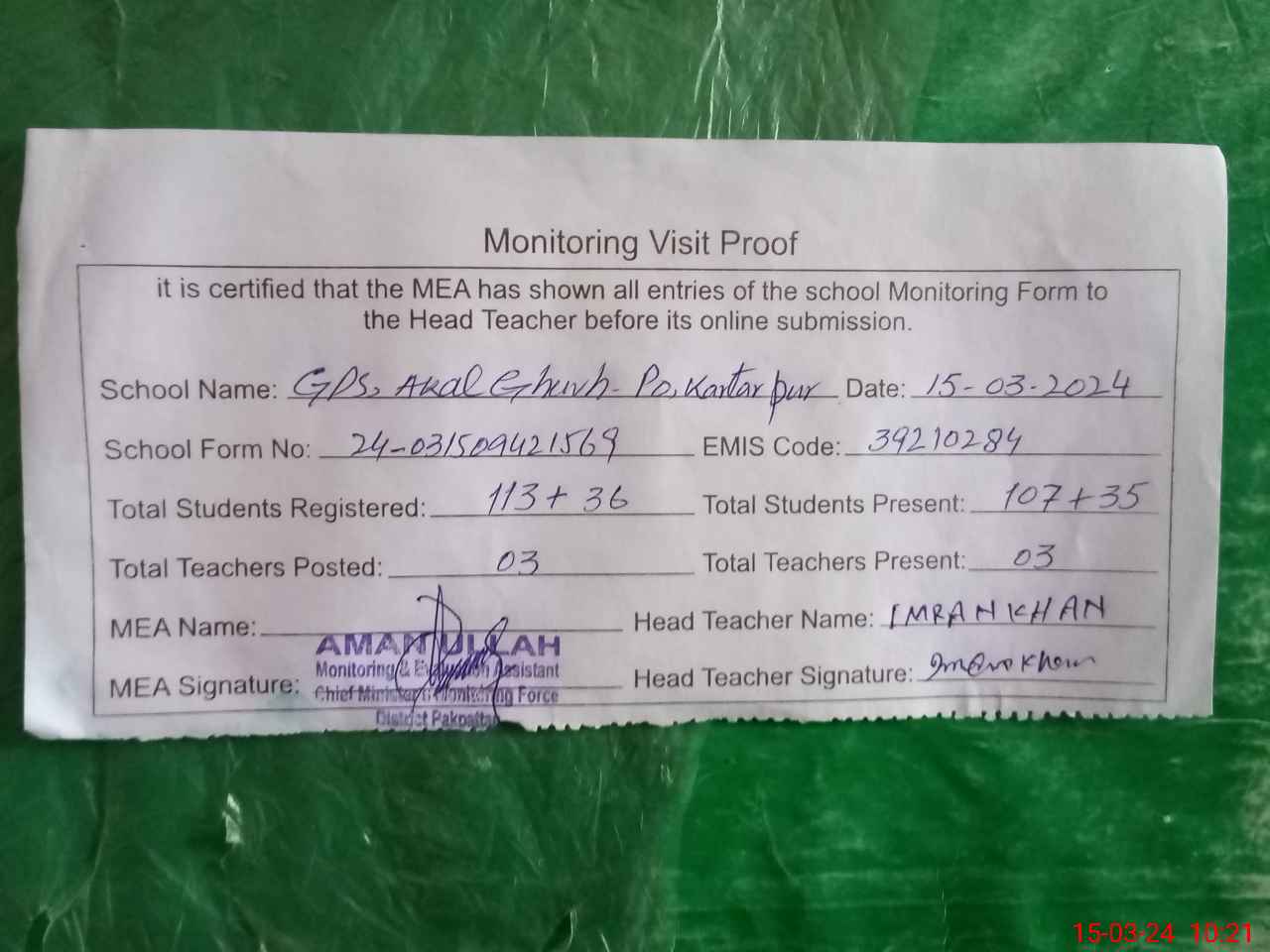 | EMIS Code: 39210284 | Name of School: GPS AKAL GARH P.O KARTAR PUR | |||