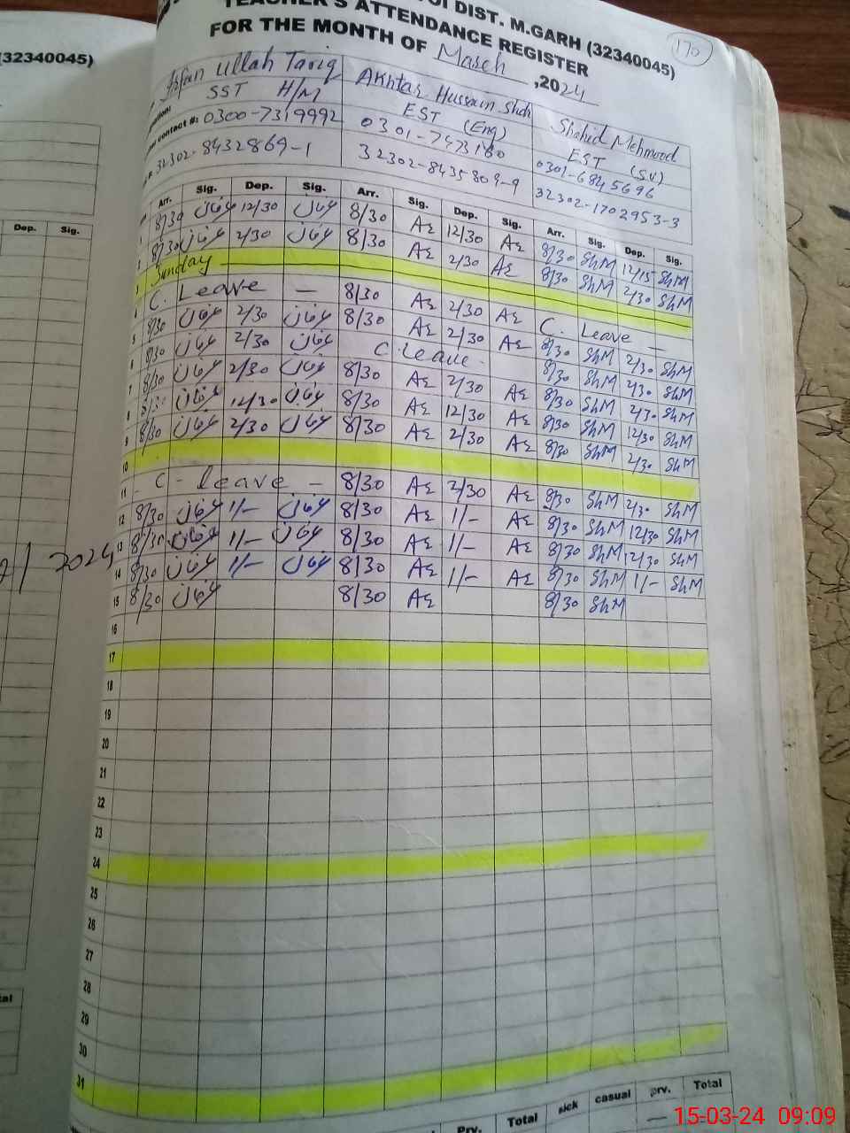 | Name: IR**** UL**** TA**** Designation: (School Headmaster's/Headmistress's) S.S.T.(GEN) Phone/Cell Number: 03**** |