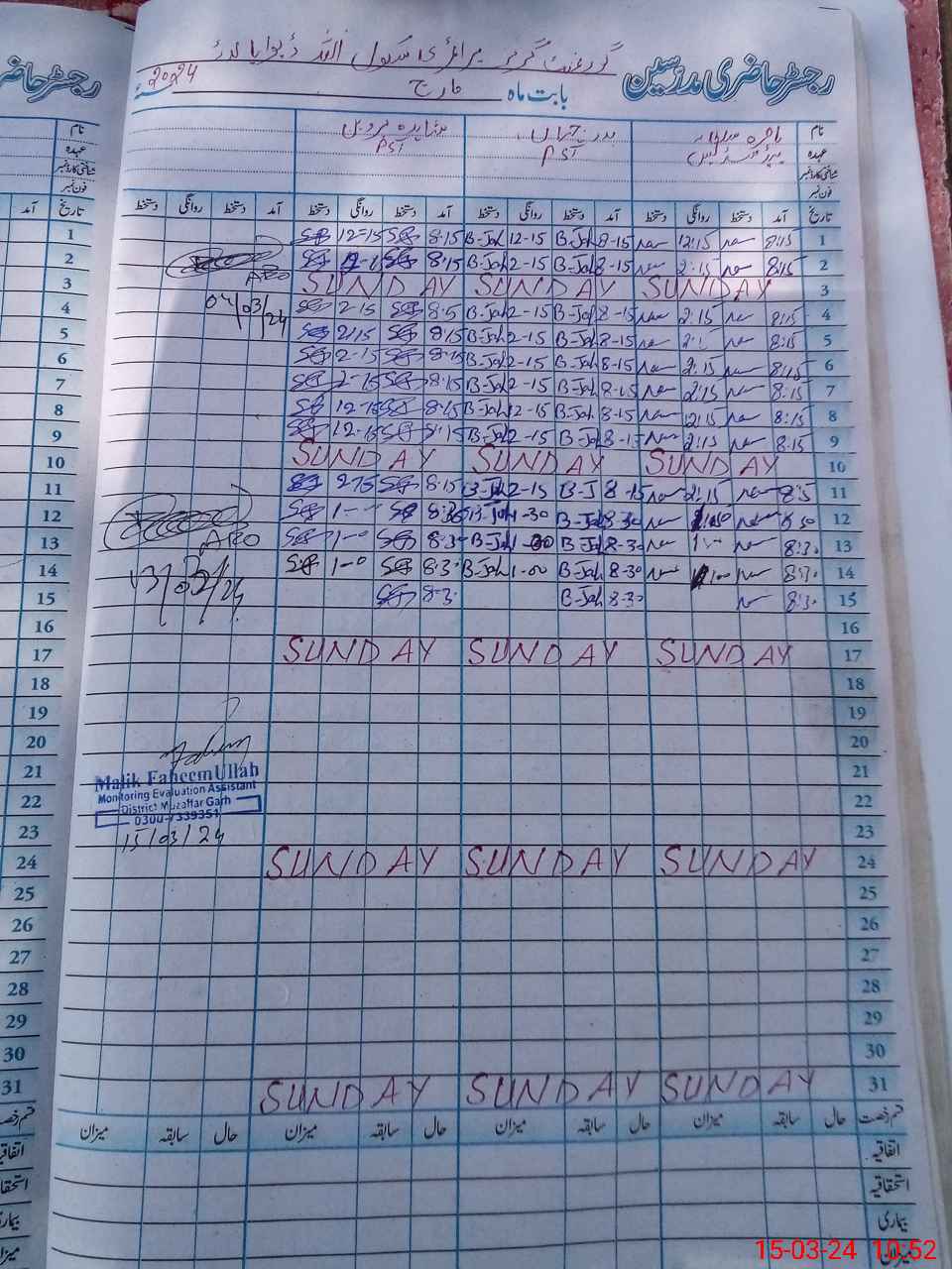 | Name: NA**** SU**** Designation: (School Headmaster's/Headmistress's) PST Phone/Cell Number: 03**** |
