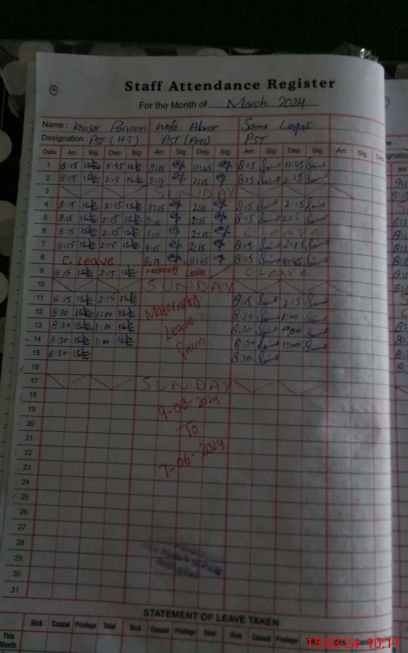 | 31**** | Wa**** Ab**** | PST | Regular | 2 | 0 | 0 | 0 | 0 | 0 | 0 | 0 | 2 | Maternity |