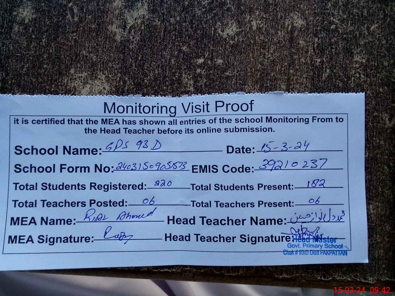 | EMIS Code: 39210237 | Name of School: GPS 93/D | |||
