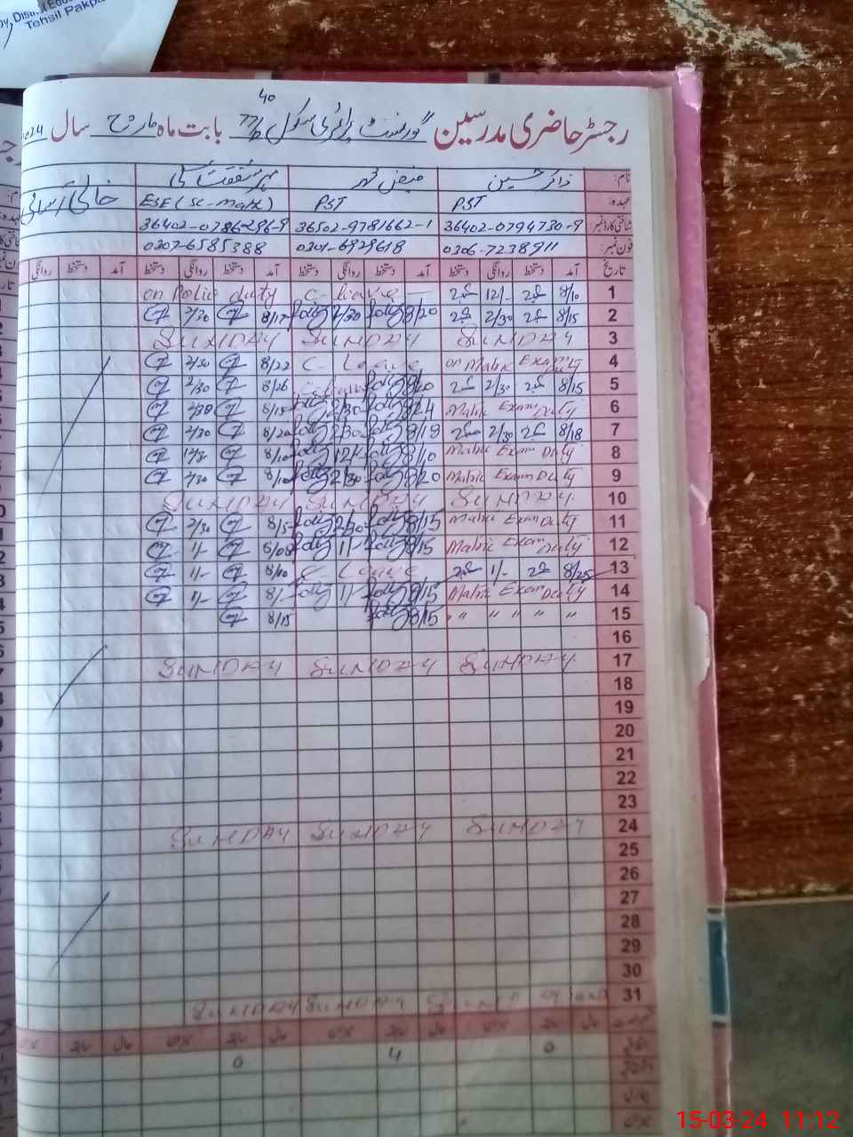 | 36**** | Za**** Hu**** | PST | Regular | 0 | 0 | 0 | 0 | 0 | 0 | 0 | 0 | 0 | Exam Duty |