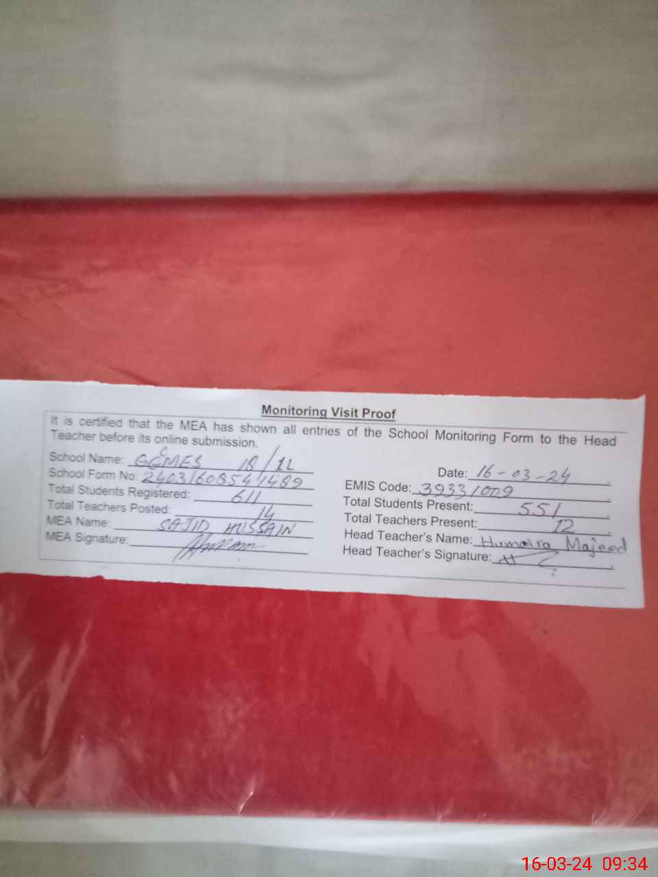 | Certified that this School was Inspected by the Undersigned MEA/DMO Today and the Information Stated Above is as Per Record. | |||||