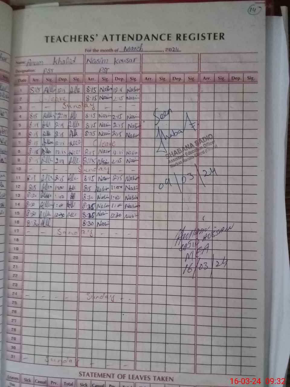 | Name: HU**** MA**** Designation: (School Headmaster's/Headmistress's) SST (SCI) Phone/Cell Number: 03**** |