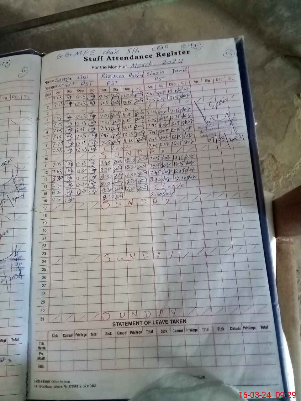 | Leave | Duty | Absent | Maternity | Medical | Ex- Pak |