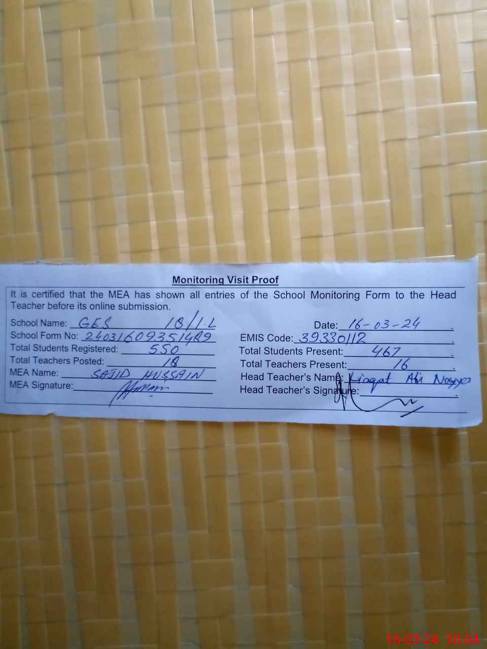 | EMIS Code: 39330112 | Name of School: GES CHAK 18/1-L | |||