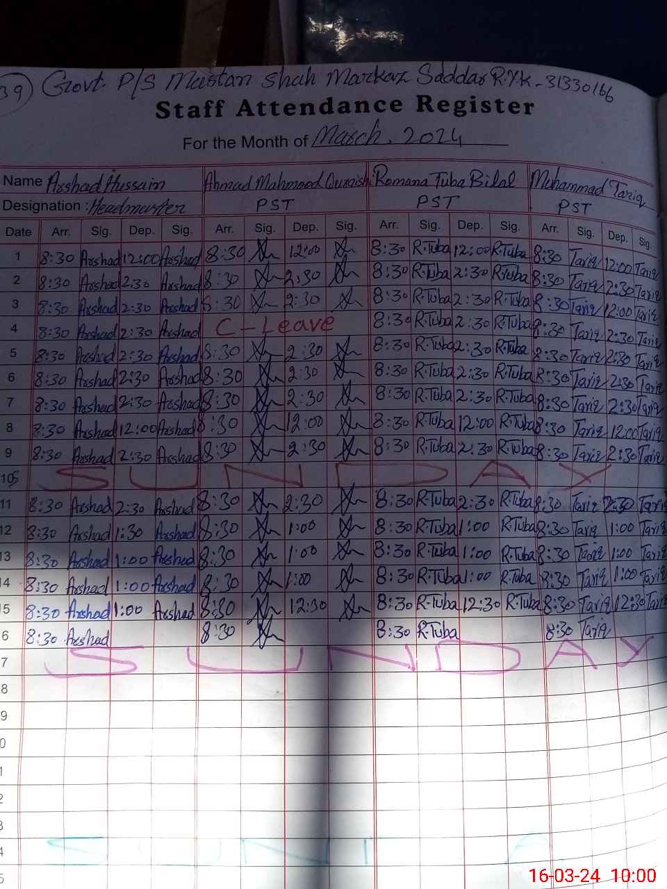 | Name: Ar**** Hu**** Designation: (School Headmaster's/Headmistress's) PST Phone/Cell Number: 03**** |