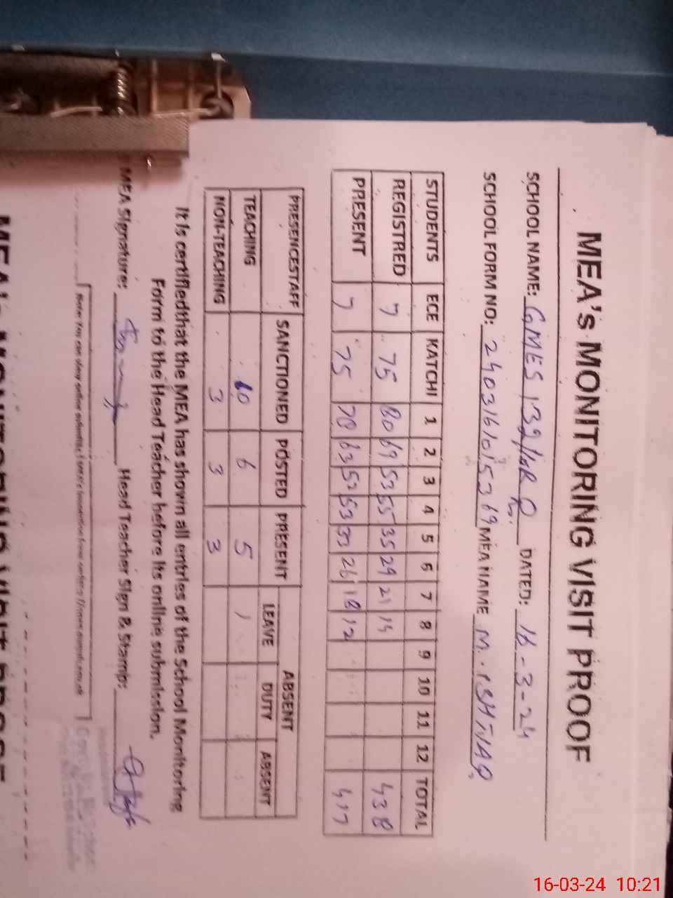 | Monitoring Date: 16-03-2024 | Start Time: 16-03-2024 09:30 AM | End Time: 16-03-2024 10:22 AM | Name of MEA: M.Is**** (S**** 03**** | |