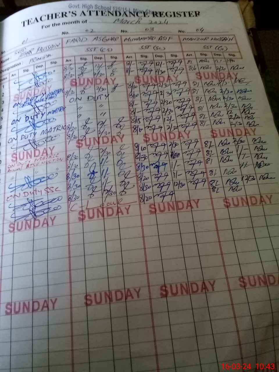 | 36**** | Ma**** | 1 | 0 | 1 | 0 | 0 | 0 | 0 | 0 | 0 | 0 | Exam Duty | |