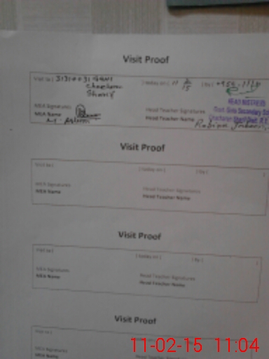 | Attendance Register | Head Teacher | MEA with School | Visit Proof |