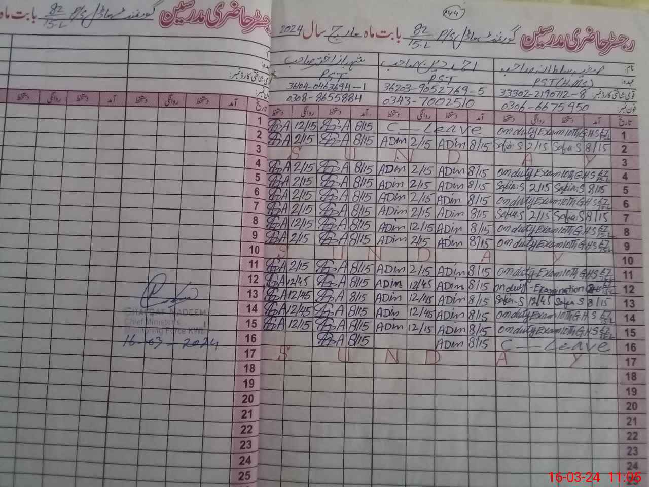 | Name: Sa**** Su**** Designation: (School Headmaster's/Headmistress's) PST Phone/Cell Number: 03**** |