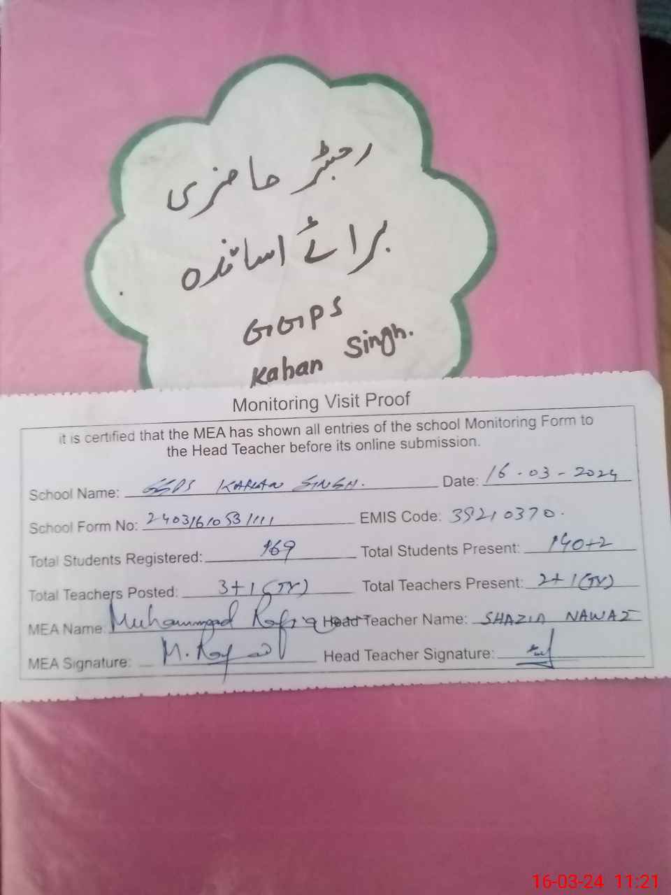 | EMIS Code: 39210370 | Name of School: GGPS KAHAN SINGH | |||