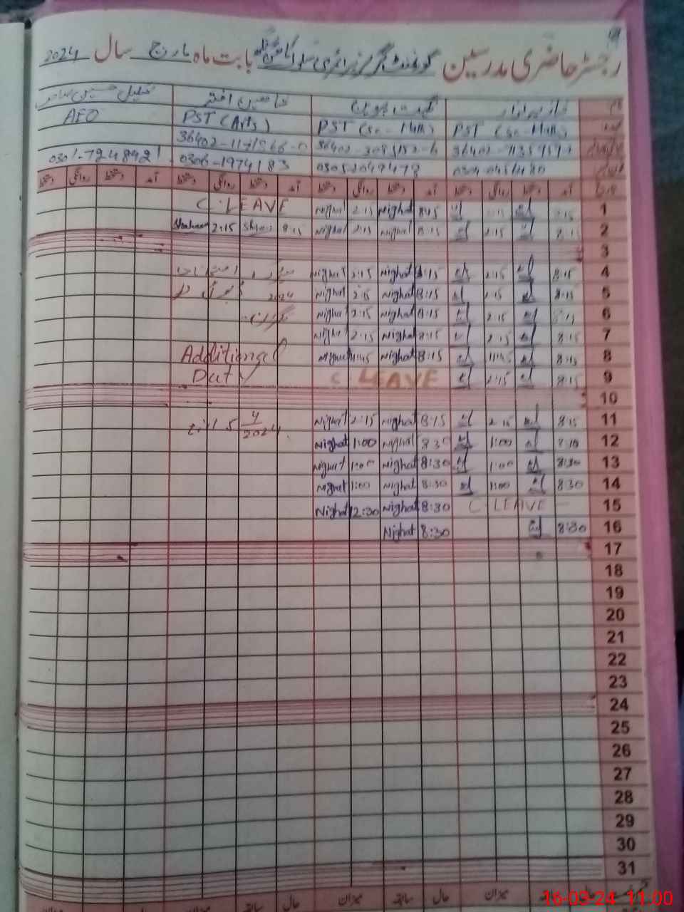 | Name: SH**** NA**** Designation: (School Headmaster's/Headmistress's) PST Phone/Cell Number: 03**** |