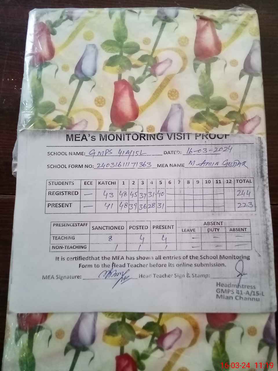 | EMIS Code: 36430291 | Name of School: GMPS 41-A/15-L, MIAN CHANNU | |||