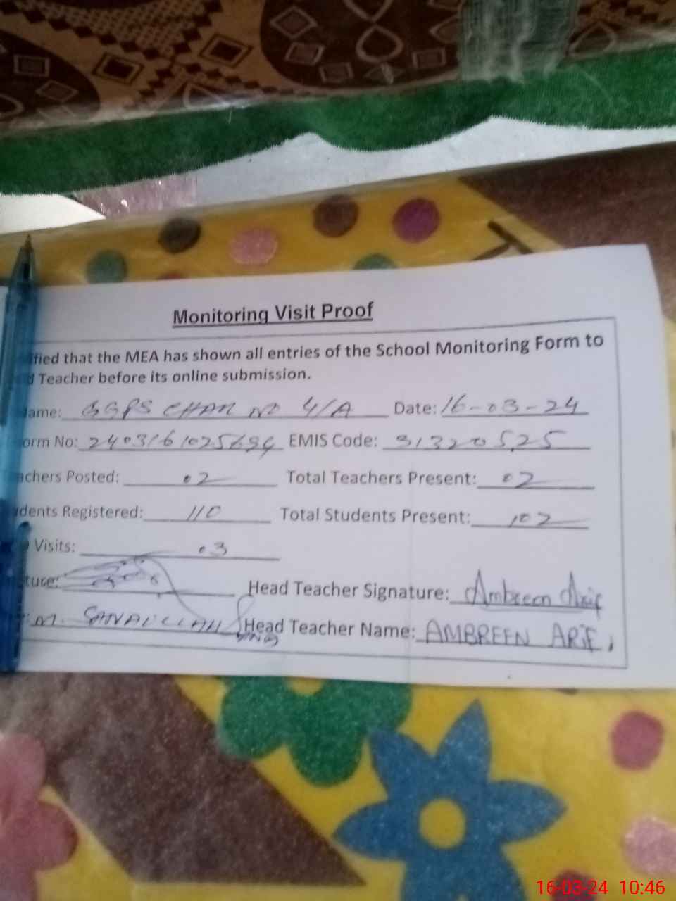 | Monitoring Date: 16-03-2024 | Start Time: 16-03-2024 10:25 AM | End Time: 16-03-2024 10:46 AM | Name of MEA: Mu**** Sa**** Ul**** Sa**** | |