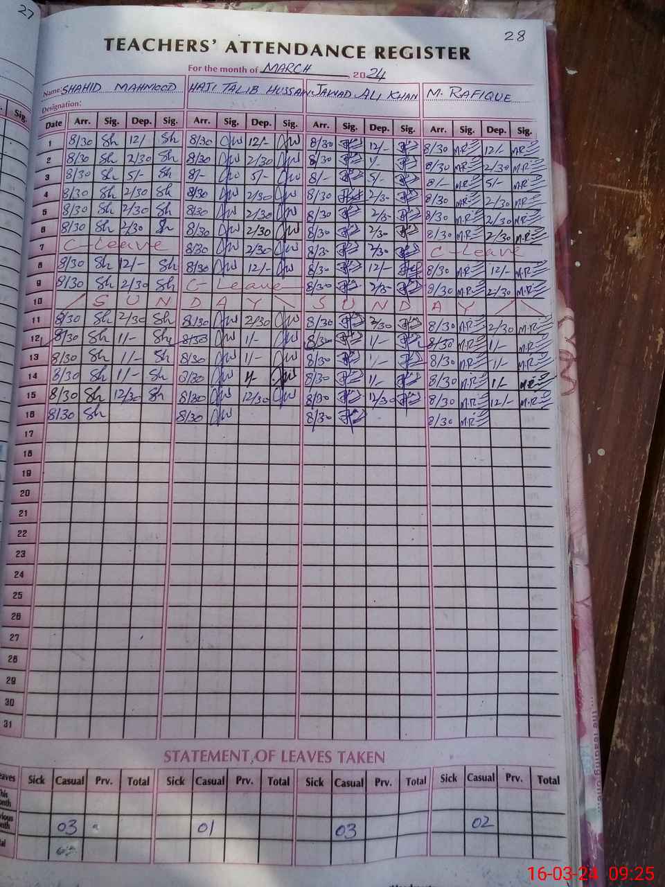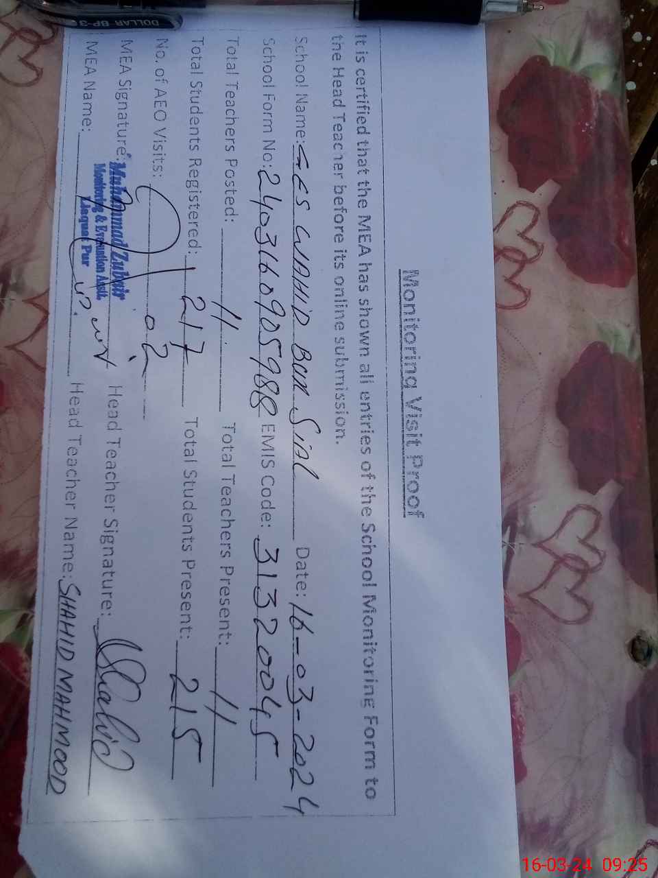 | EMIS Code: 31320045 | Name of School: GES WAHID BAKHSH SIAL | |||