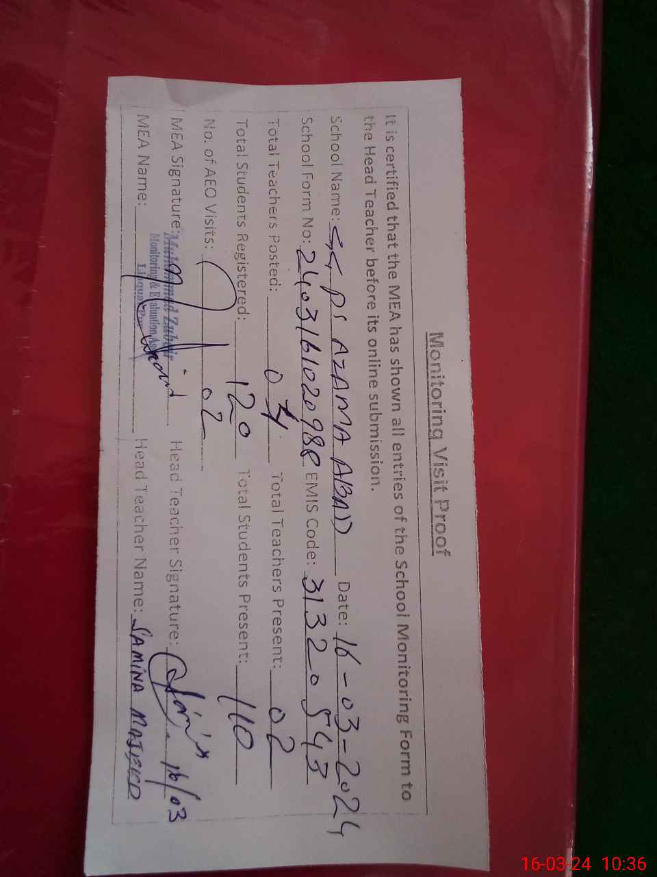| EMIS Code: 31320543 | Name of School: GGPS AZAM ABAD | |||
