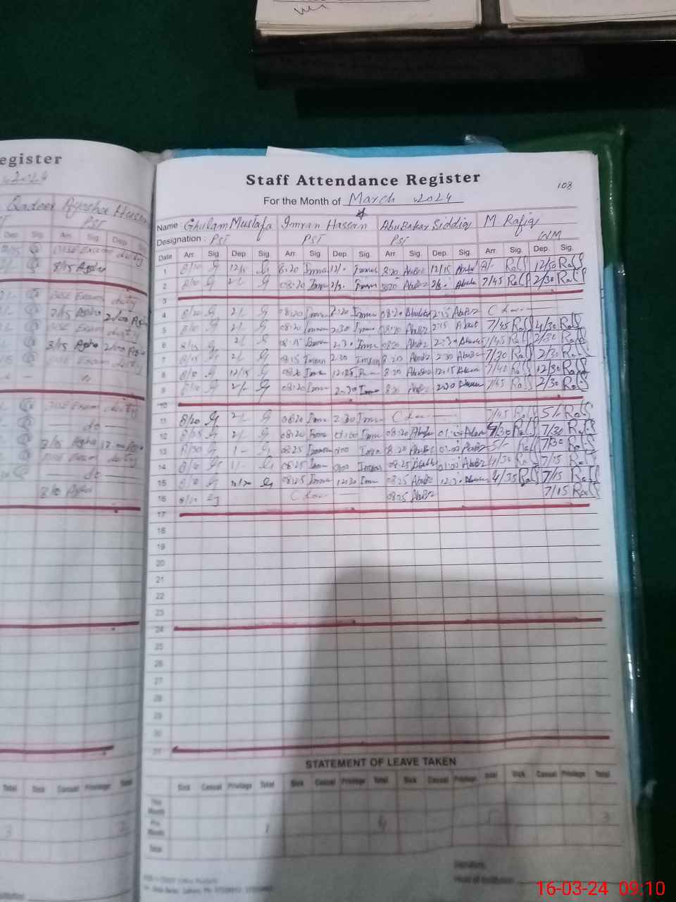 | CNIC | Full Name | Designation | R/C | Absence During Last Calender Month |
