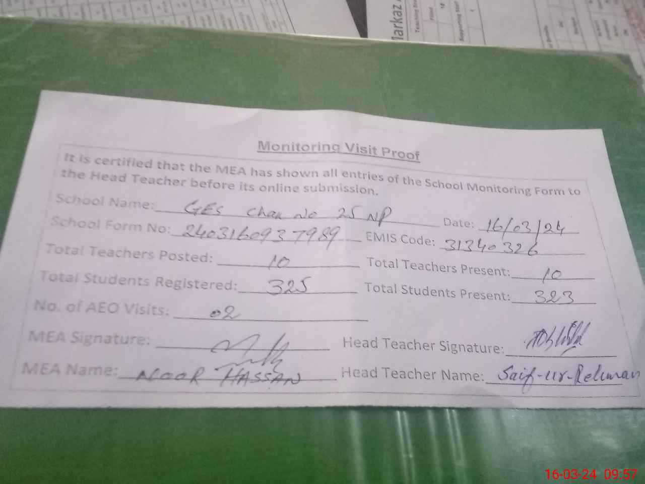| EMIS Code: 31340326 | Name of School: GES CHAK NO 25/NP | |||