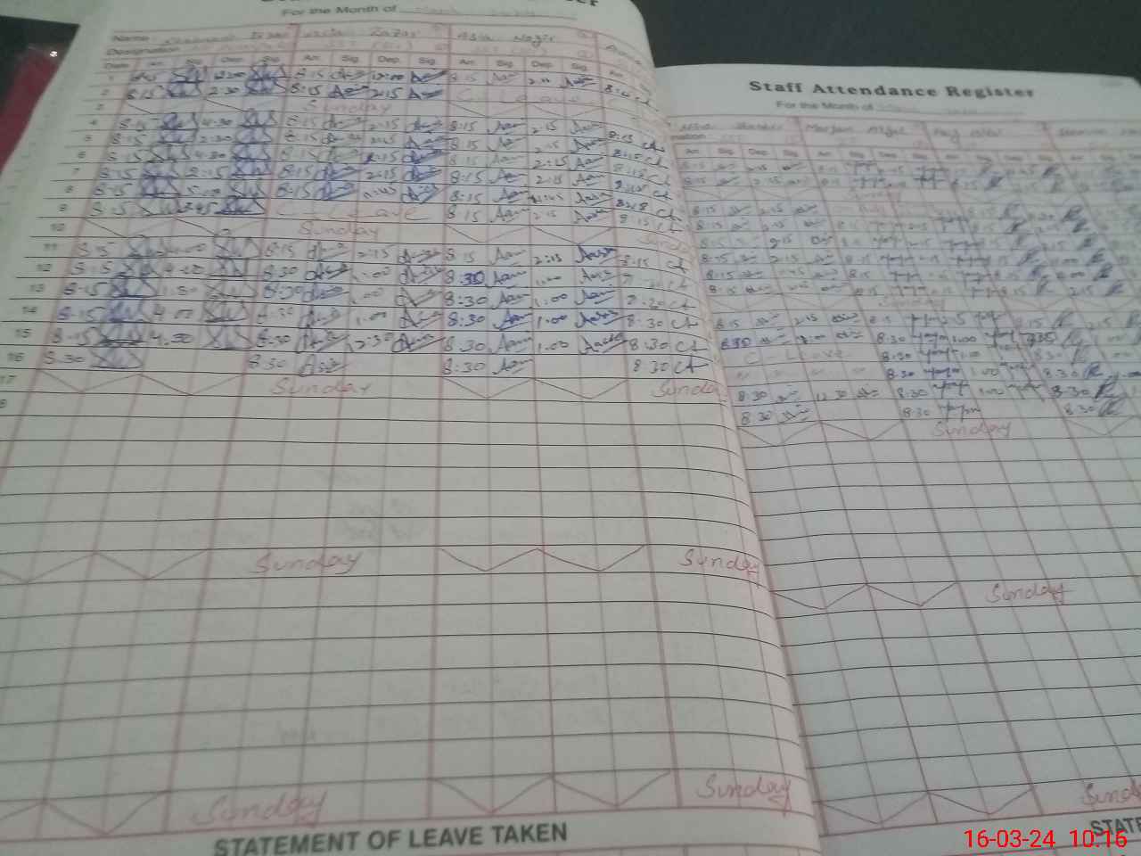 | Leave | Duty | Absent | Maternity | Medical | Ex- Pak |