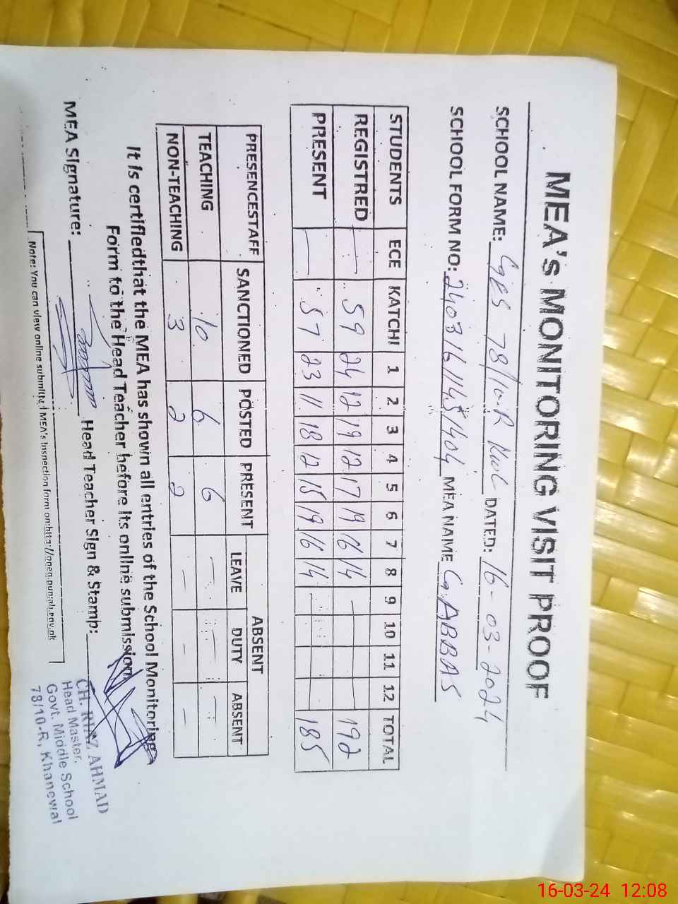 | EMIS Code: 36420173 | Name of School: GES 78/10-R, P/O 80/10-R, KHANEWAL | |||