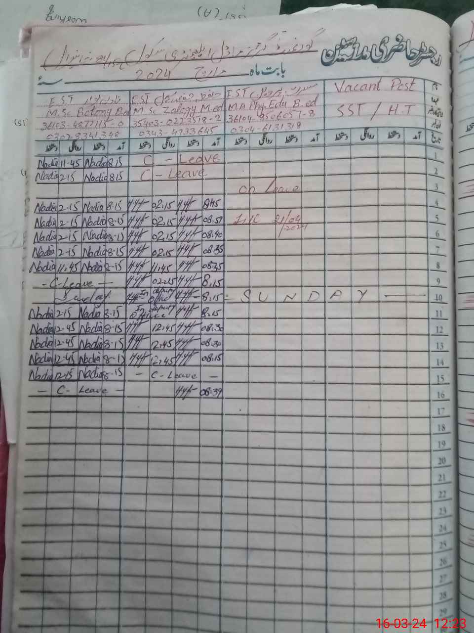 | Name: Na**** Ja**** Designation: (School Headmaster's/Headmistress's) SST(SCIENCE) Phone/Cell Number: 03**** |