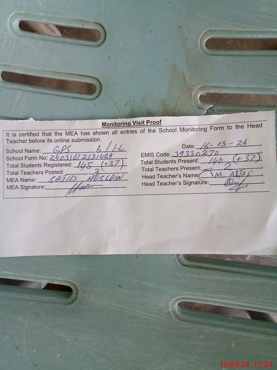 | EMIS Code: 39330270 | Name of School: GPS CHAK NO. 6/1-L | |||