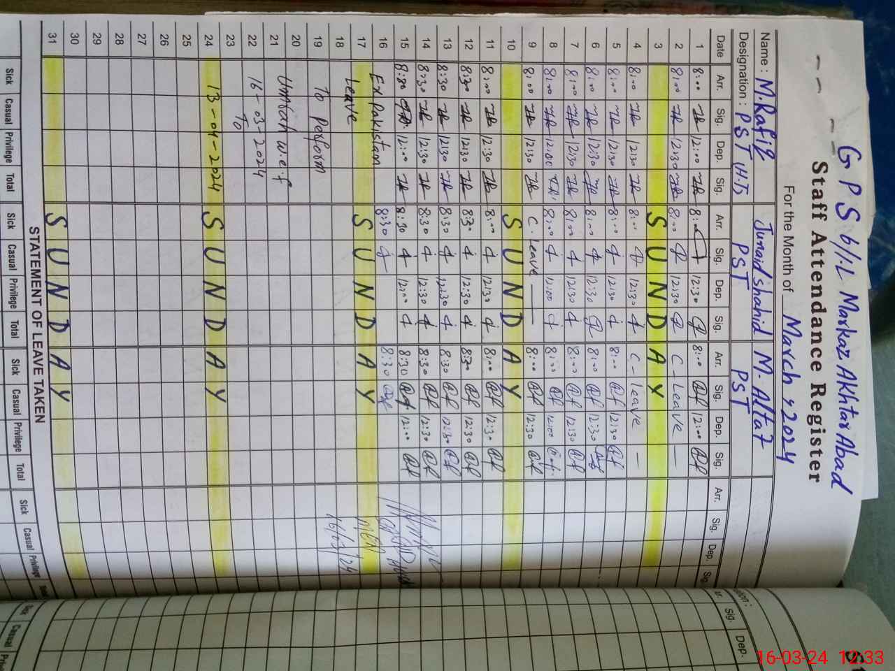 | Name: Mu**** Ra**** Designation: (School Headmaster's/Headmistress's) PST Phone/Cell Number: 03**** |